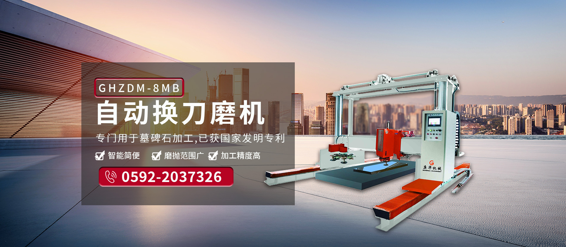 公司生產適用于大理石、花崗巖、砂巖、石灰?guī)r、洞石、玉石等各種石材的機械設備。主要產品有GHHW系列紅外線橋式切邊機、GHQQ系列橋式多片組合鋸石機、各種手動/自動/單頭/多頭板材磨拋機、以及各種異形加工設備。公司長期注重品質管理,以質量為中心,從原材料采購到整機出貨,各道工序均嚴格管理,每臺機器必須經過認真的調試才出廠,確保出廠產品均是優(yōu)質產品,給客戶創(chuàng)造“零煩惱”的產品。